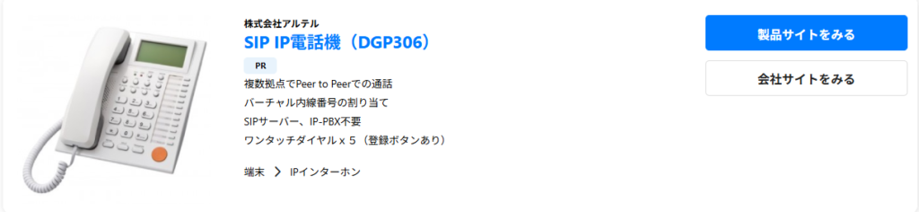 4月1日より、製造業向けの製品検索・比較サイト「Metoree(メトリー)」で、SIP電話機(DGP306)が掲載されましたのでお知らせいたします。(以下のリンクをクリックしサイトへ飛びます)